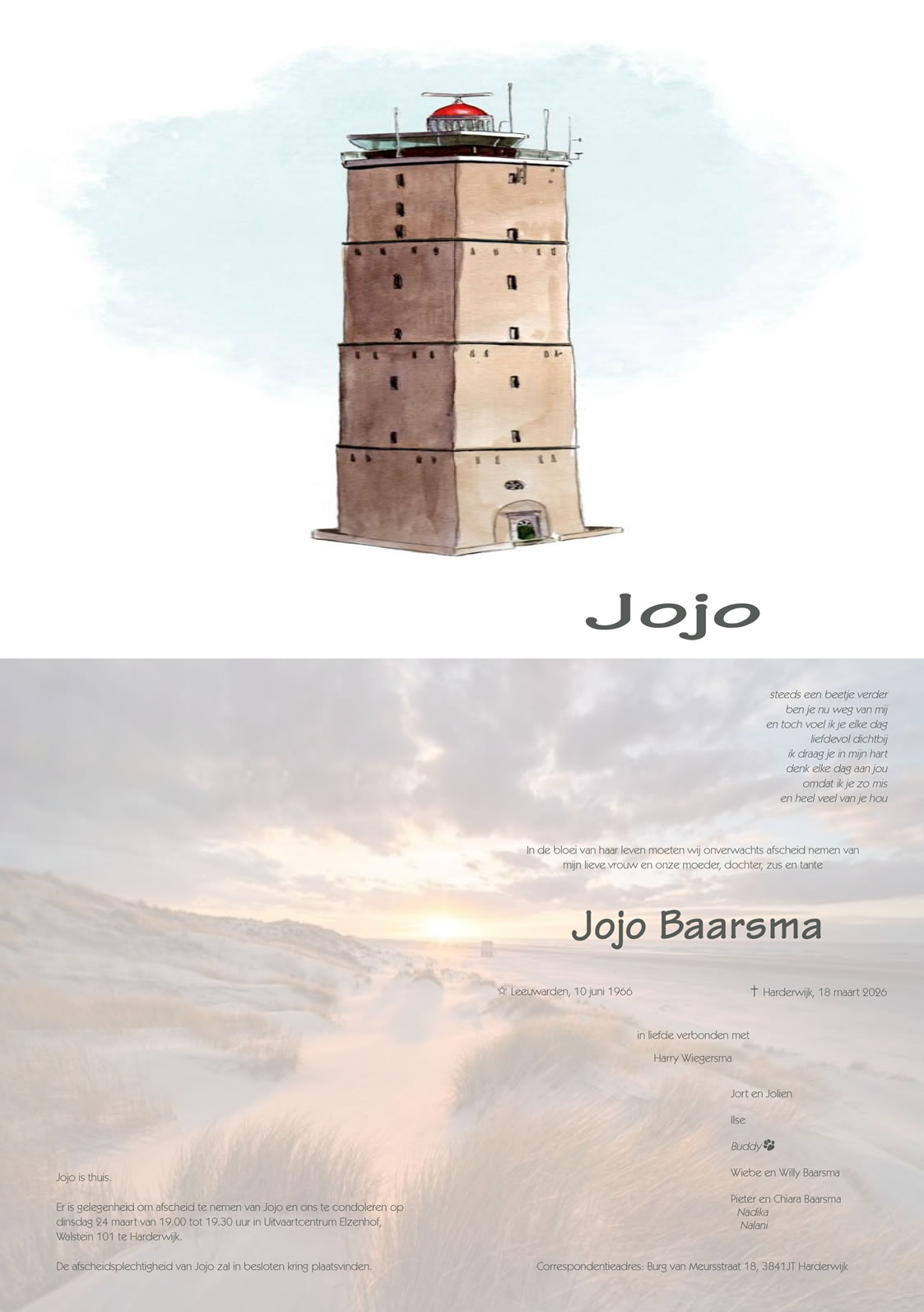 Onze gedachten gaan uit naar Harry, Ilse, Jort, Jolien en verdere familie en vrienden. Wij wensen hun veel kracht en sterkte toe in deze moeilijke tijd.