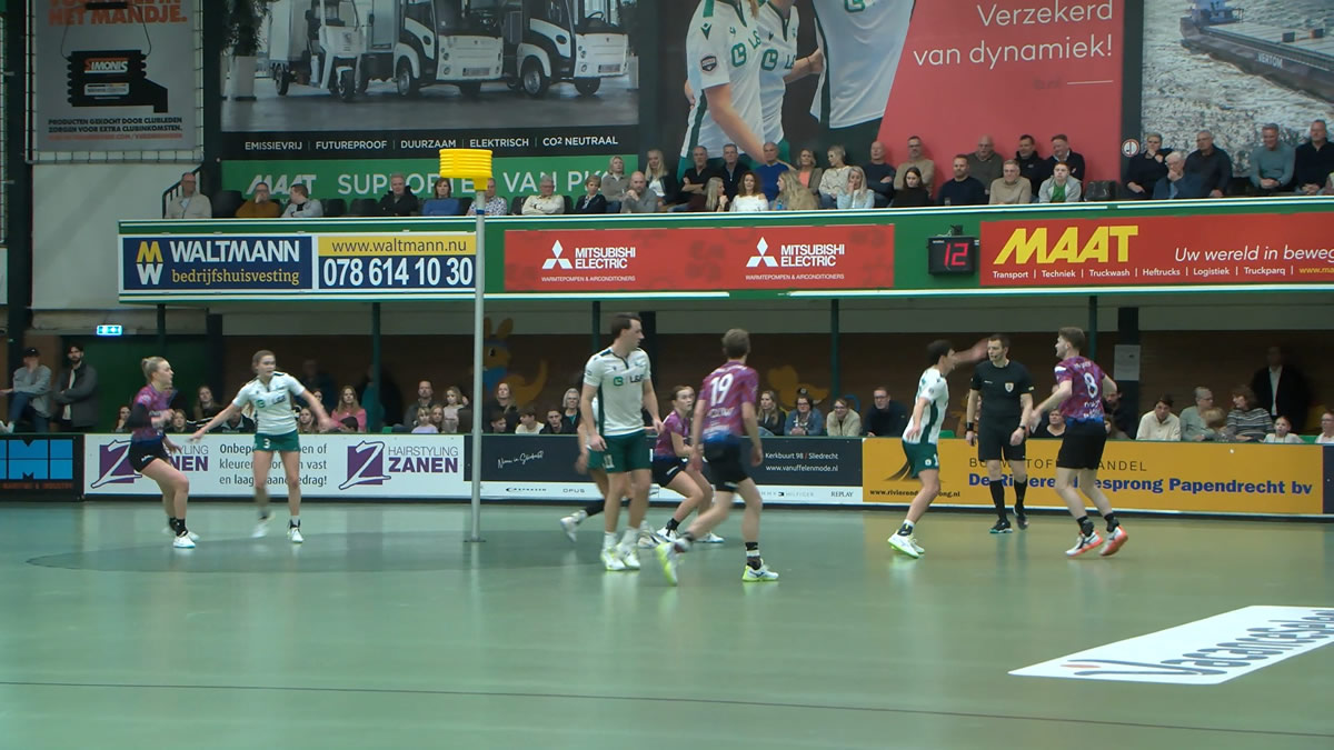 Een uitverkochte hal met 850 fans, vier gele kaarten en een oponthoud van 40 minuten. Er gebeurde van alles in en rond de intense derby op vrijdagavond tussen Unitas en DOS’46, waarbij de Harderwijkers het spel na rust naar hun hand zetten: 19-14.