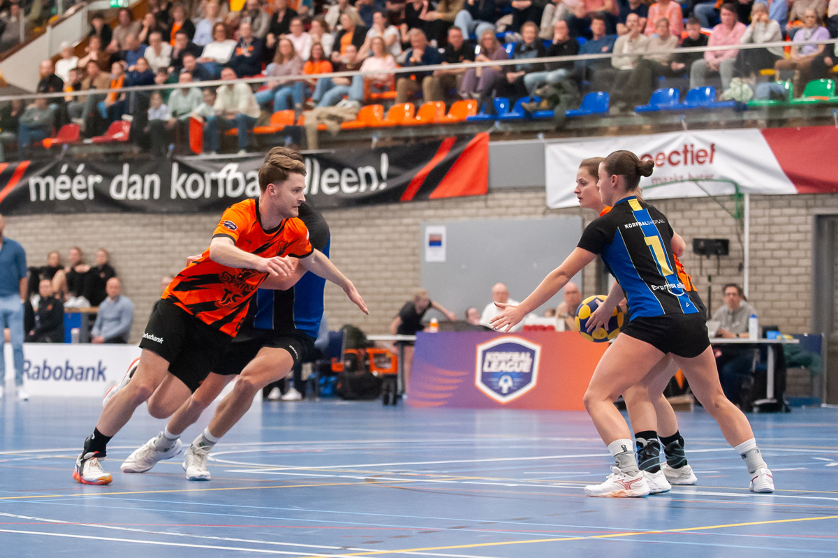 Een uitverkochte hal met 850 fans, vier gele kaarten en een oponthoud van 40 minuten. Er gebeurde van alles in en rond de intense derby op vrijdagavond tussen Unitas en DOS’46, waarbij de Harderwijkers het spel na rust naar hun hand zetten: 19-14.