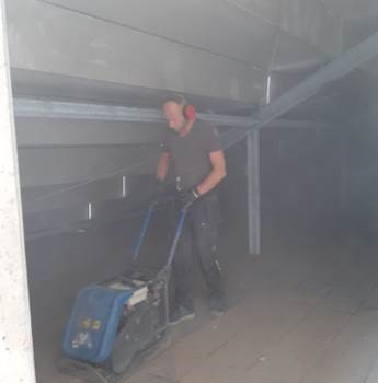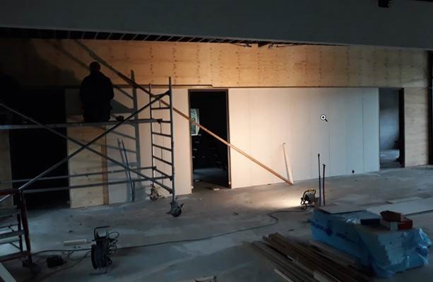 De contouren van de opslag, keuken en bestuurskamer worden mooi zichtbaar, een behoorlijk stevige constructie is aangebracht boven in de kantine.