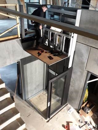 Deze week is de lift geplaatst. Een mooi stukje techniek met fijne afwerking. Past prachtig in de open ruimte van de gang.