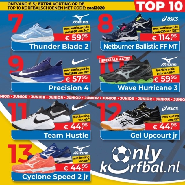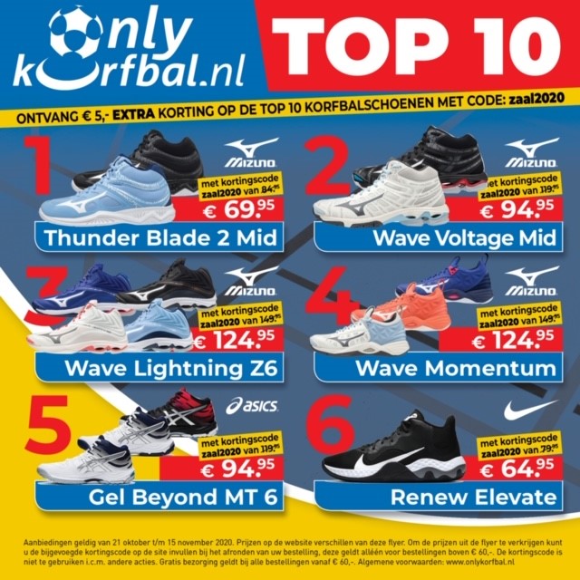 Koop nu je zaalschoenen via ONLYKORFBAL.NL gebruik kortingscode zaal2020 en krijg € 5,- extra voordeel in de webshop