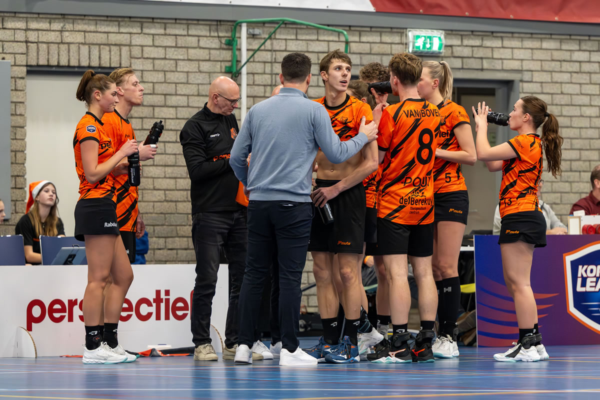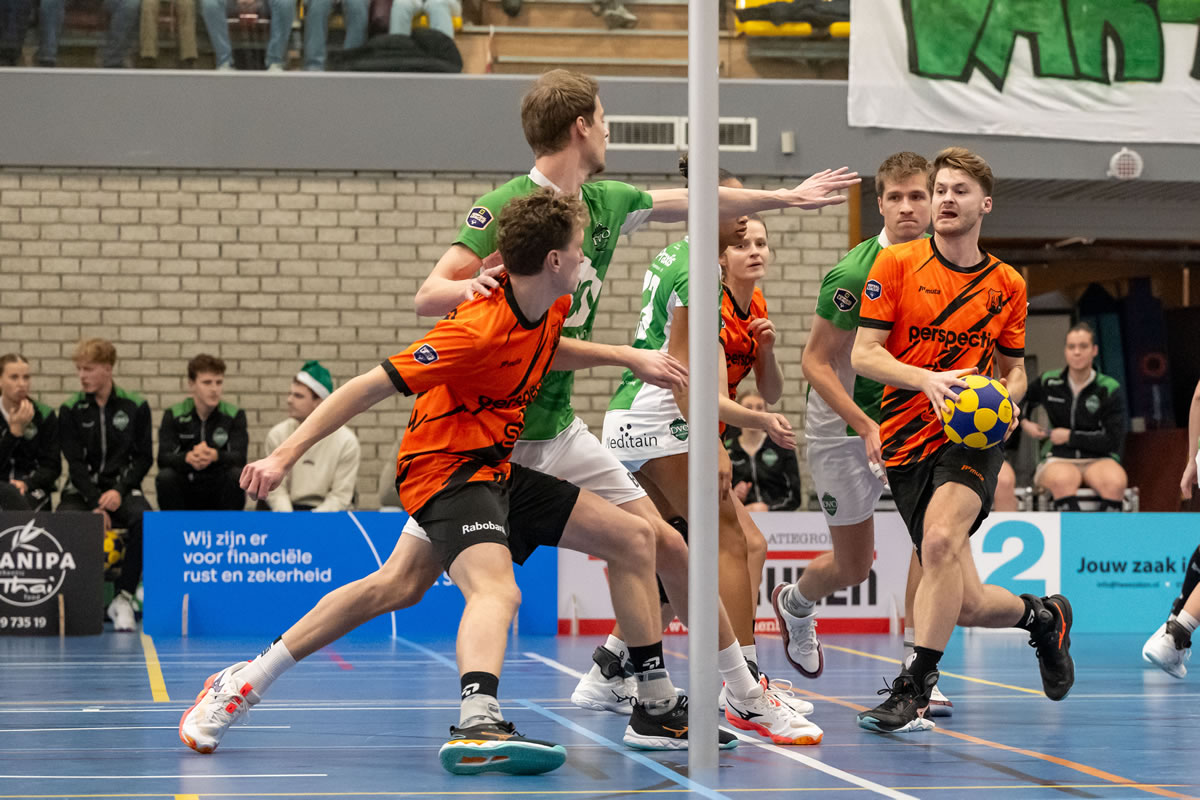 De start van de tweede helft liet even op zich wachten door een probleem met de paal, maar eenmaal begonnen was het direct raak. Gertjan Meerkerk opende namens DVO/Transus, waarna Lynn Bijkerk en Daan Reijgersberg snel iets terugdeden. De doelpunten vielen in hoog tempo in de openingsminuut, maar daarna was het opnieuw DVO/Transus dat een gaatje sloeg naar 9-13. Unitas/Perspectief kende vervolgens een doelpuntloze fase van ruim vijf minuten en leek het lastig te krijgen. Toen DVO/Transus uitliep naar 9-15, leek het momentum bij de bezoekers te liggen. Maar precies op dat moment kantelde de wedstrijd volledig.