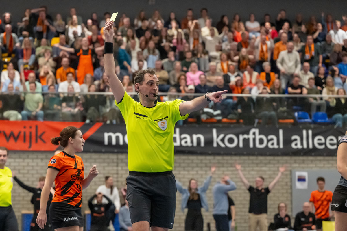 Na het voorstellen van de teams was er een langdurige onderbreking door problemen met de lichtinstallatie. Drie lampen bleven uit, maar de teams wilden graag spelen. Het vele publiek zag opgelucht dat de wedstrijd in de Korfbal League om 21.10 uur eindelijk van start ging.